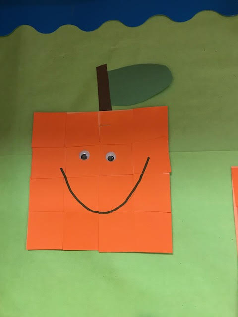 Then it was onto pumpkins and Halloween! We had a blast on Pumpkin Day. Thank you so much to all of the parents who came in to help out. The students measured and weighed their pumpkins, predicted and tested whether their pumpkins would sink or float, estimated and counted the number of seeds in our class pumpkin, estimated the number of candy corn in our skeleton cup (good job to Benson for winning the prize! He had the closest estimate (only 1 number away) when we counted them as a class at the end of the day), played Halloween Bingo with Halloween sight words, painted our pumpkins, and last but not least created a Spookley the Square Pumpkin craft. The day before Pumpkin Day we read the Spookley book. This is a great book that goes along with our kindness theme. It is about a pumpkin named Spookley who is not like the other pumpkins because he is square. All of the other pumpkins tease him because he is different. This makes Spookley sad, but he looks past this sadness when there is a terrible storm and all the other pumpkins start rolling away. Spookley saves the day by wedging himself between the other pumpkins and the fence. This could not have happened if he wasn't square. The other pumpkins were so thankful and so was the farmer who grew the pumpkins. The next year the farmer sowed those same seeds and all different types of pumpkins grew; pumpkins of all shapes, sizes, and colors. People came from all over the see this amazing pumpkin patch! The author writes, "oh what a garden variety makes" and the students learn an important message that my mom taught me when I was little- "Differences are what makes the world go round!" and not to judge a book by it's cover. What a great message!